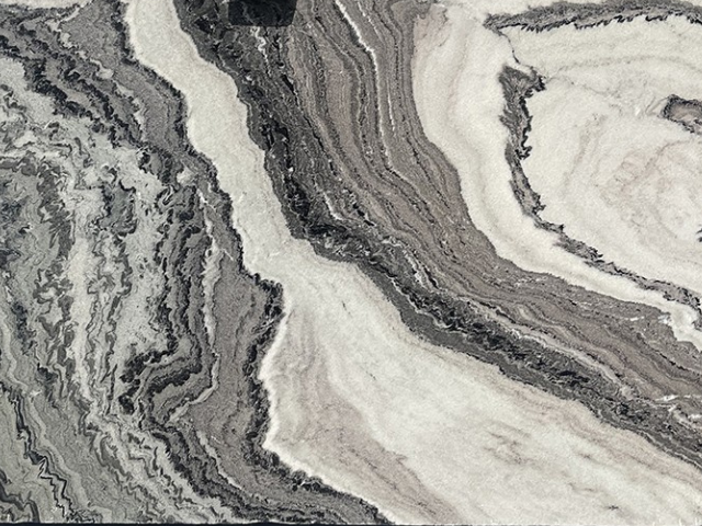 Mercury Black Marble showcases a rich black background adorned with flowing patterns of gray and silver. Its natural texture adds to its visual appeal, making it an excellent choice for flooring and countertops. This elegant marble pairs perfectly with dark-toned kitchen cabinets, enhancing the overall ambiance with a modern, luxurious touch.